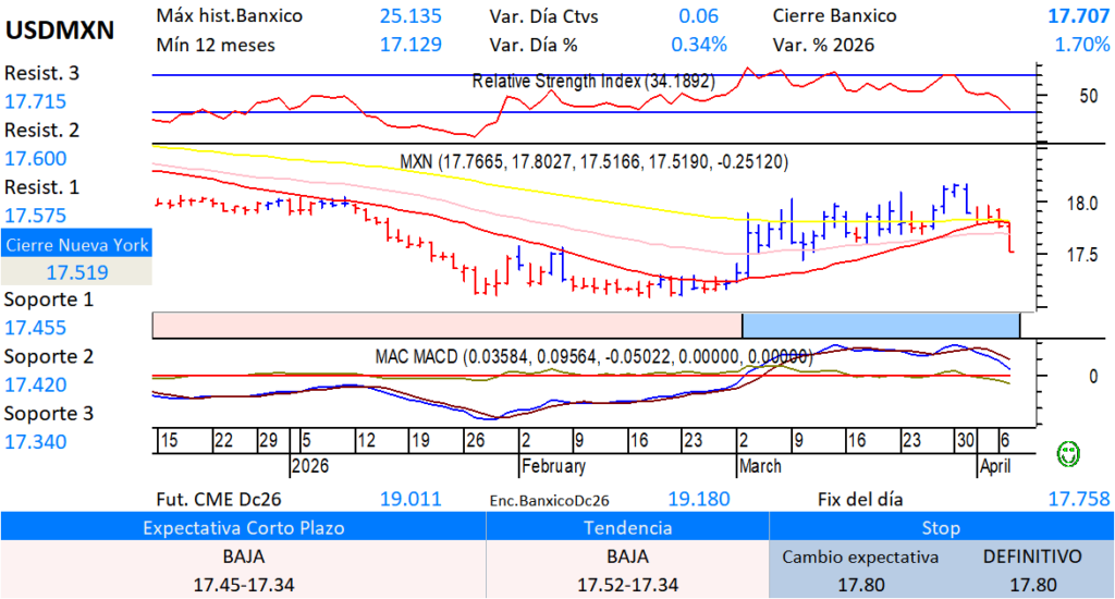 El peso mexicano Dejar un comentario / Gráficas / Por Mario Copca Dólar: Baja, reducir exposición;Compra gradual si vuelve sobre 17.96.