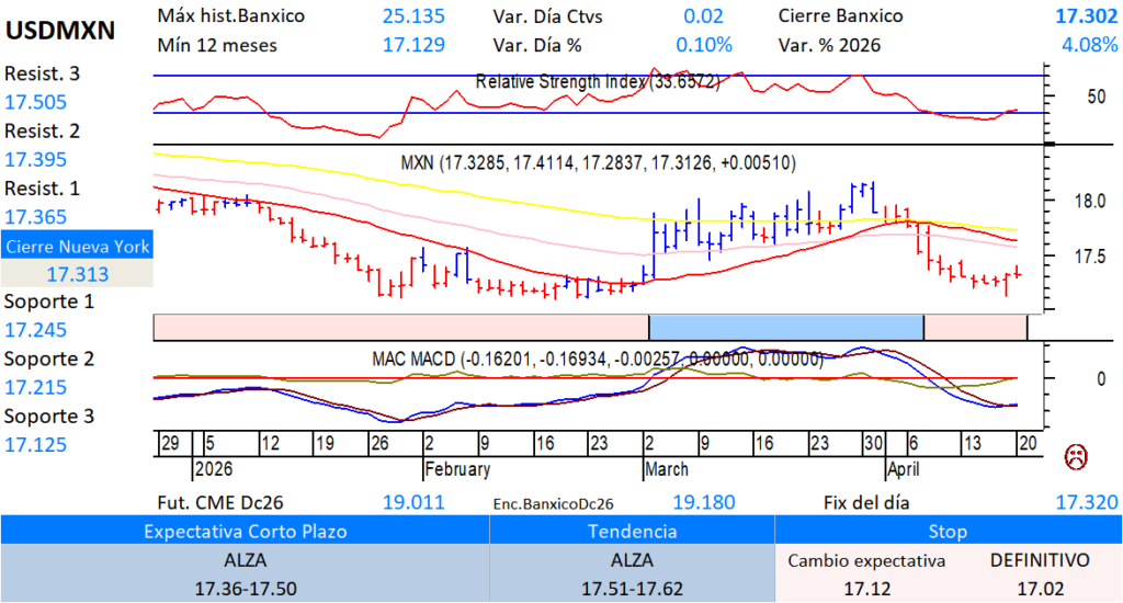 El peso mexicano Dejar un comentario / Gráficas / Por Mario Copca Dólar: Alza, rehacer las compras;Venta gradual si vuelve debajo de 17.12.