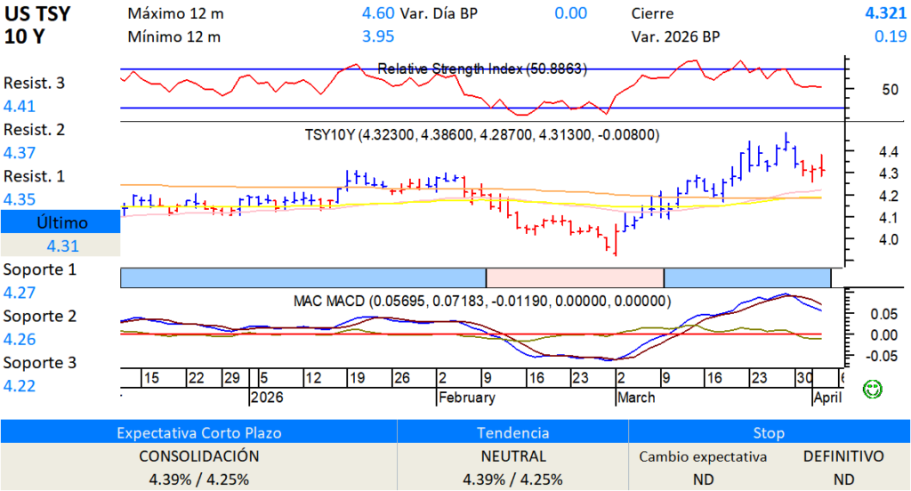Treasuries US10Y Dejar un comentario / Gráficas / Por Mario Copca Tasas: Consolidación, en espera de confirmación;Venta sobre 4.39%; Compra debajo de 4.25%.
